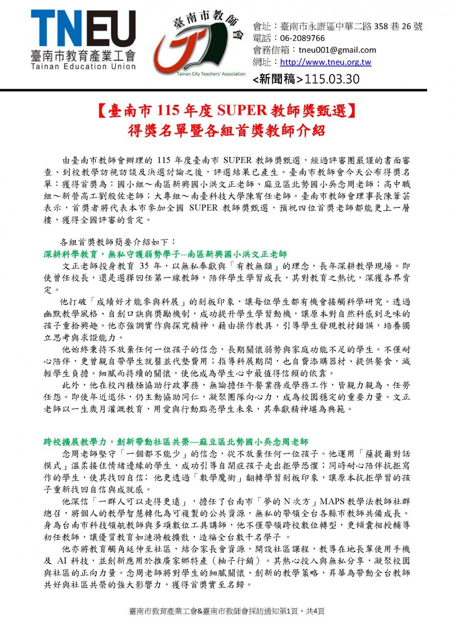 1) 20260330_TNEU_TNTA新聞稿-115年super教師得獎名單與介紹新聞稿.pdf