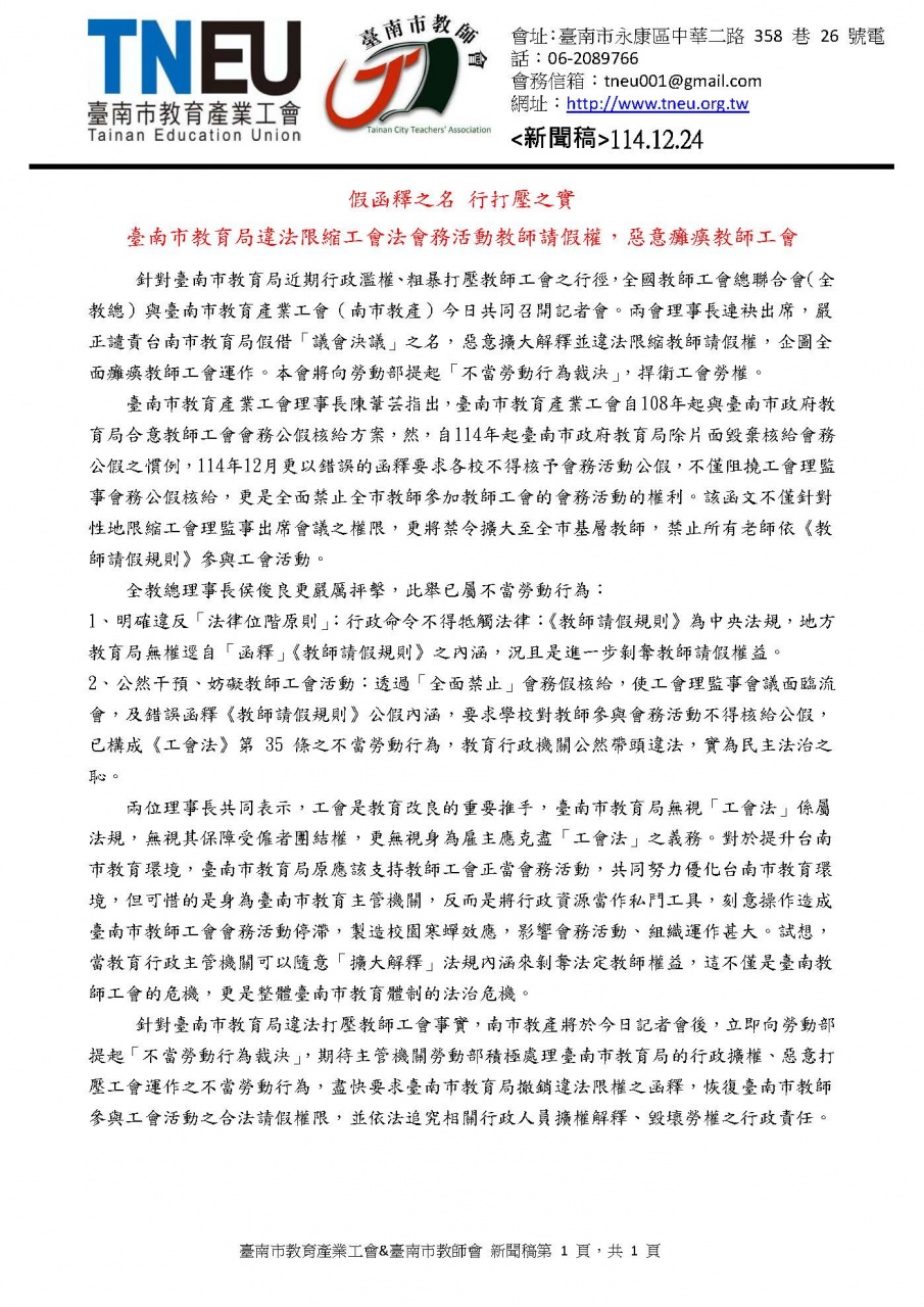 20251224_TNEU_TNTA新聞稿-假函釋之名 行打壓之實 臺南市教育局違法限縮工會法會務活動.jpg