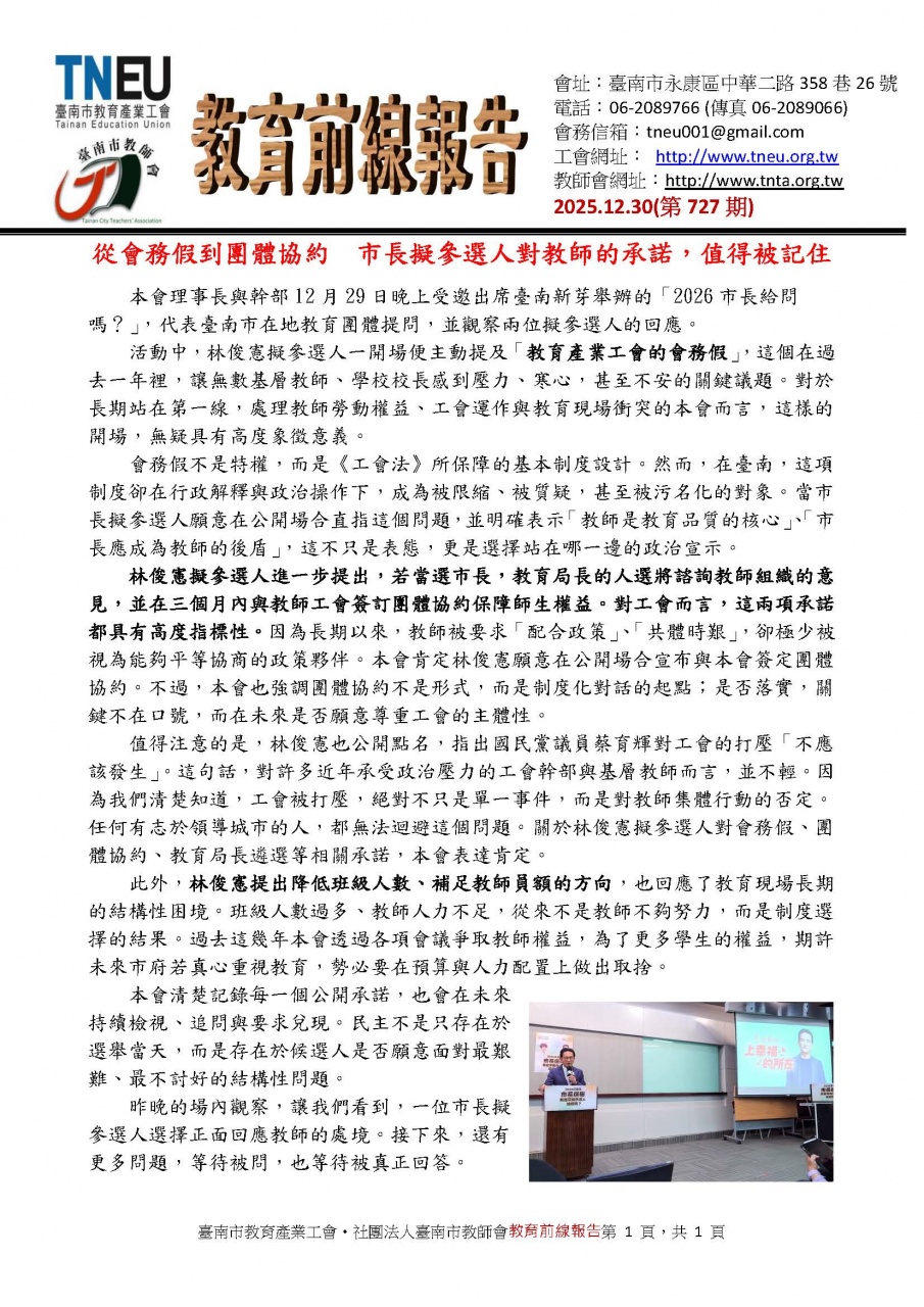 20251230教育前線報告(從會務假到團體協約 市長擬參選人對教師的承諾,值得被記住)(.jpg