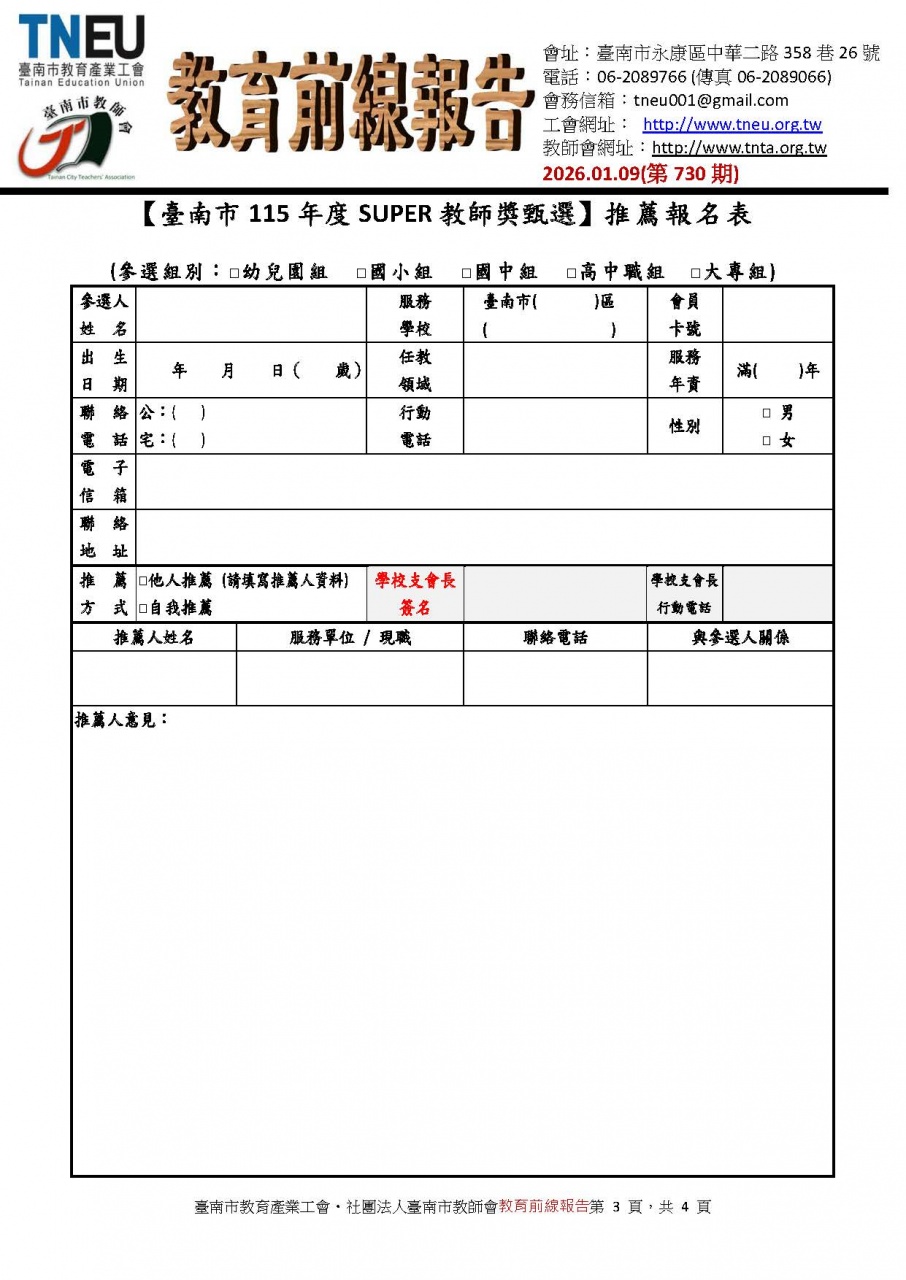 20260109教育前線報告(SUPER引航,青春揚帆! 臺南市115年度SUPER教師獎甄選)(第730期)_頁面1.jpg